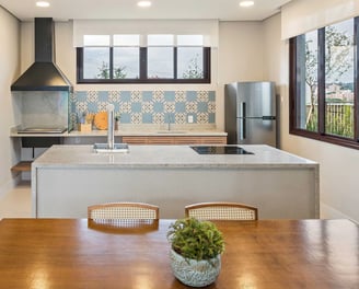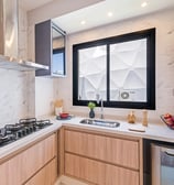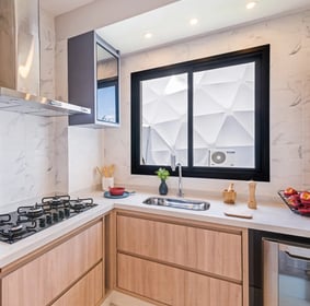 Nos apartamentos do ÁUREA, a cozinha terá um diferencial importantíssimo: uma excelente janela acima da pia, o que proporciona mais iluminação natural a todo o ambiente e garante mais frescor e ventilação